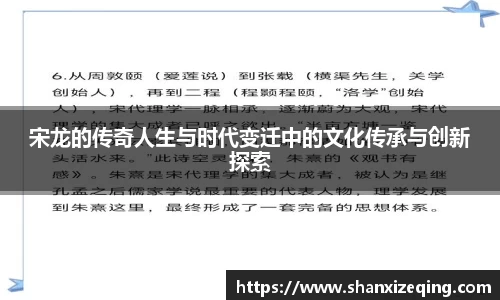 宋龙的传奇人生与时代变迁中的文化传承与创新探索